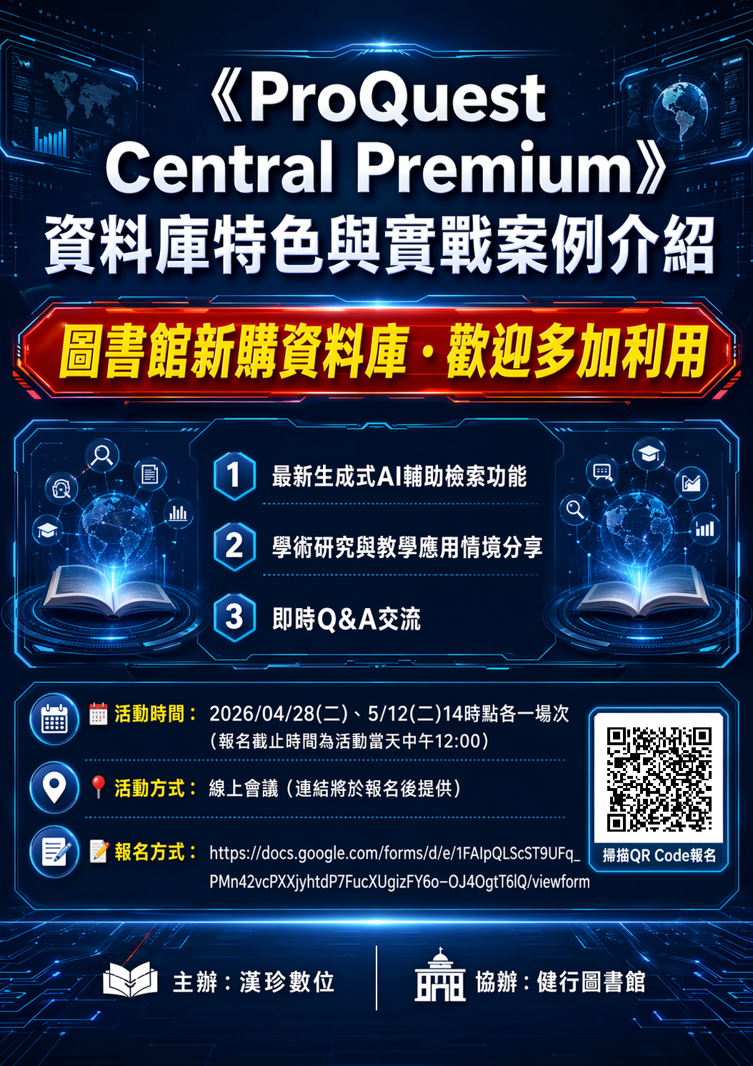 《ProQuest Central Premium》資料庫特色與實戰案例介紹-線上課程